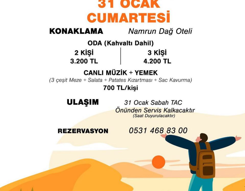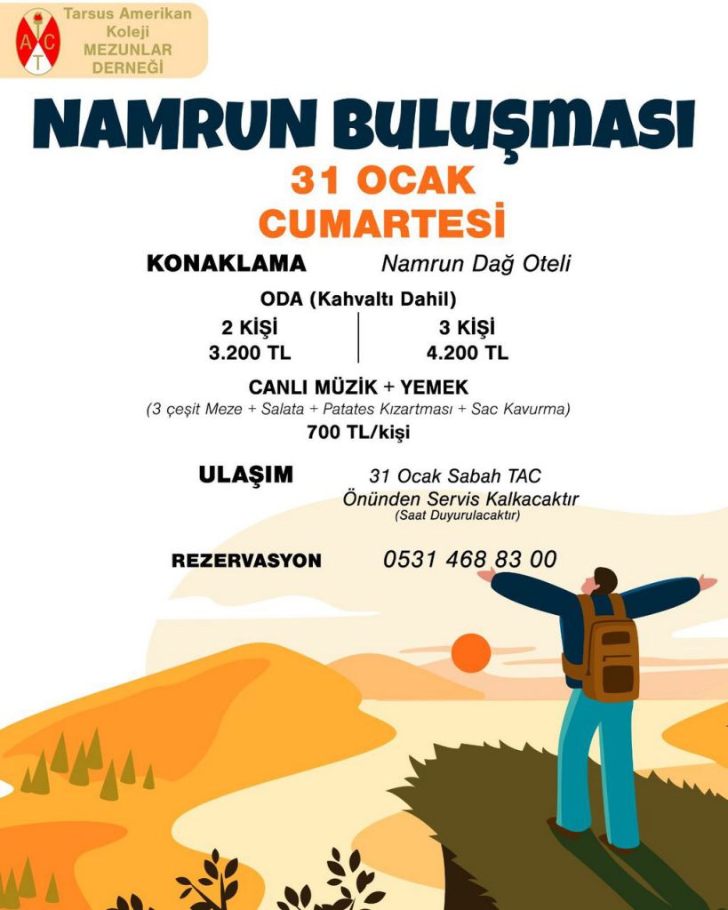 Değerli Mezunlarımız Güzel bir dağ havası almak ve Ocak ayını bol mavralı sohbetlerle uğurlamak için Namrun Dağ Otel’de buluşuyoruz. 🏔️ 31 Ocak Cumartesi sabah okuldan servis […]